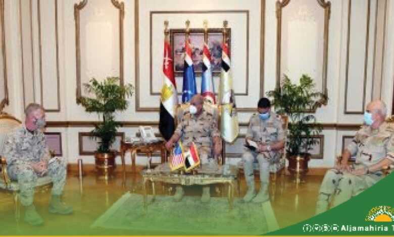 وزير الدفاع المصري يناقش مع قائد القيادة المركزية الأمريكية تطورات الأوضاع في ليبيا والمنطقة .