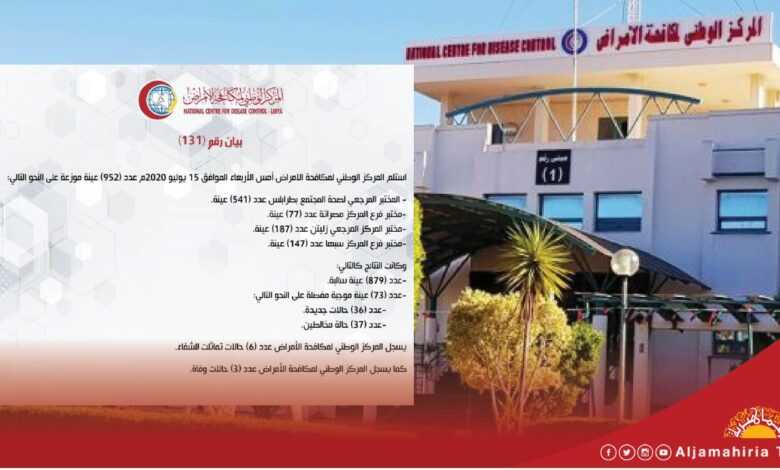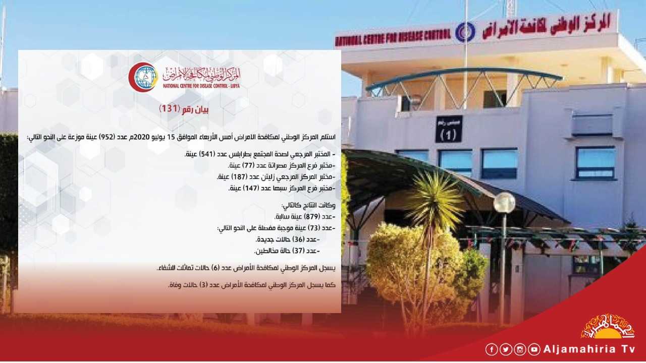 كما يسجل المركز الوطني لمكافحة الأمراض عدد (3) حالات وفاة.