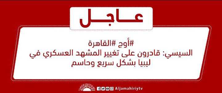 عاجل // #أوج #القاهرة السيسي: قادرون على تغيير المشهد العسكري في ليبيا بشكل سريع وحاسم