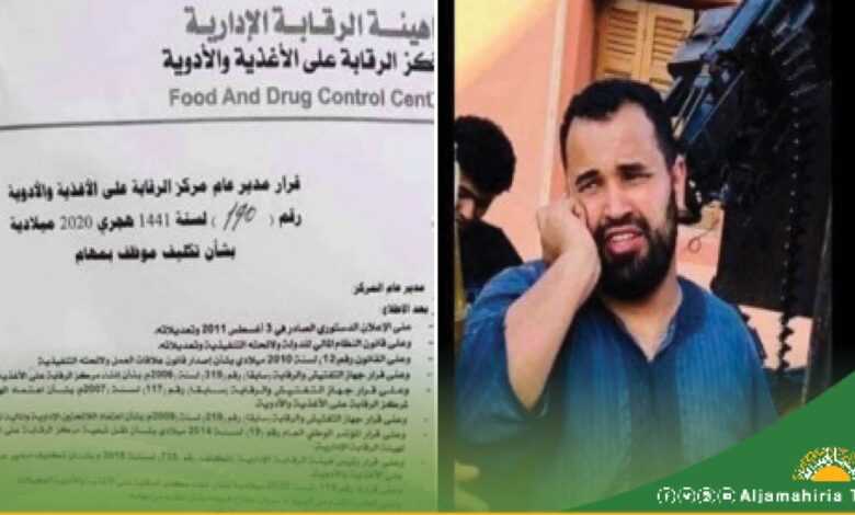 أصدر مدير عام مركز الرقابة على الأدوية و الأغذية الدكتور محمد عمر حسن قرارا بتكليف محمد مصطفى الزيتوني الملقب “بالشلفوح “مديرا لمكتب رقابة الأدوية و الأغذية في العجيلات.