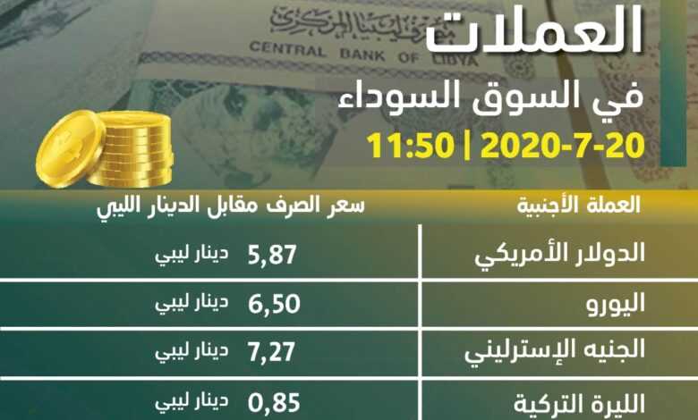 أسعار العملات الأجنبية مقابل الدينار الليبي اليوم الأثنين 20 يوليو 2020 بالسوق الموازي