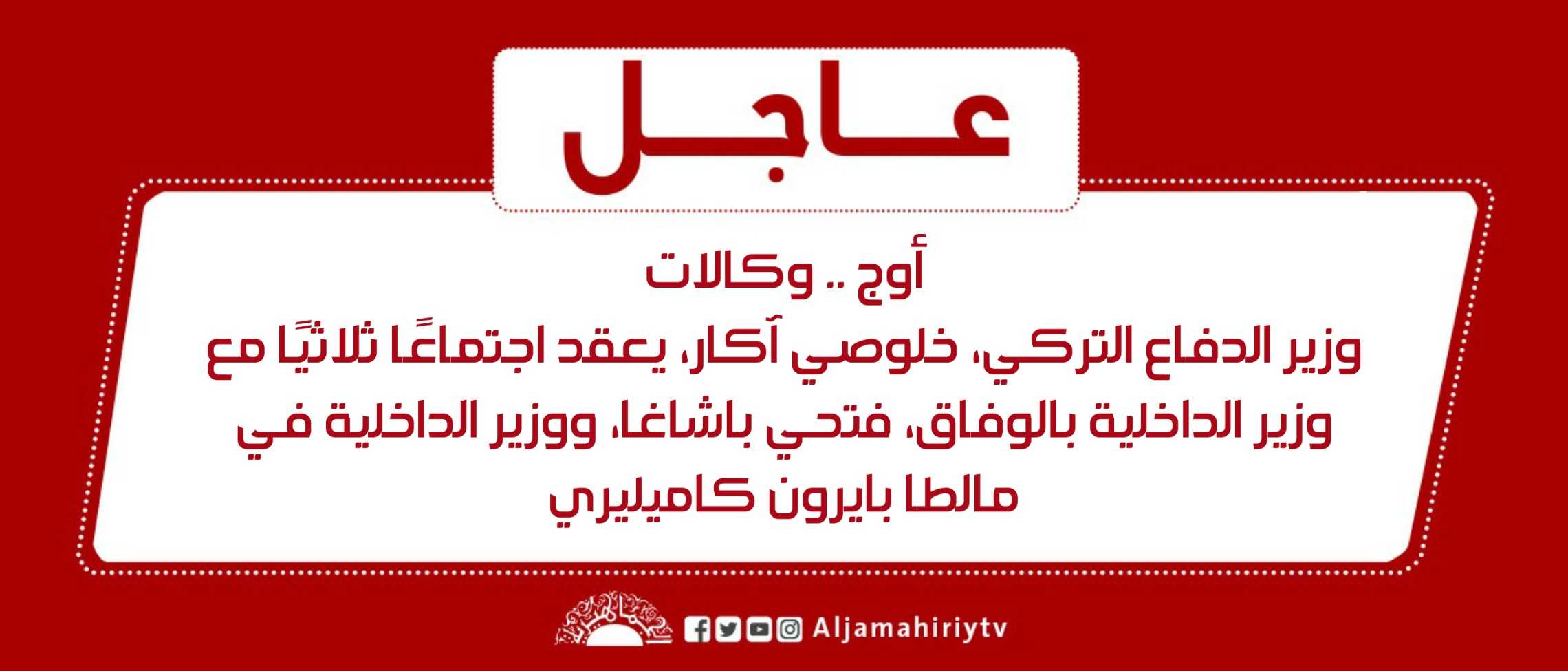 عاجل // أوج .. وكالات وزير الدفاع التركي، خلوصي آكار، يعقد اجتماعًا ثلاثيًا مع وزير الداخلية بالوفاق، فتحي باشاغا، ووزير الداخلية في مالطا بايرون كاميليري