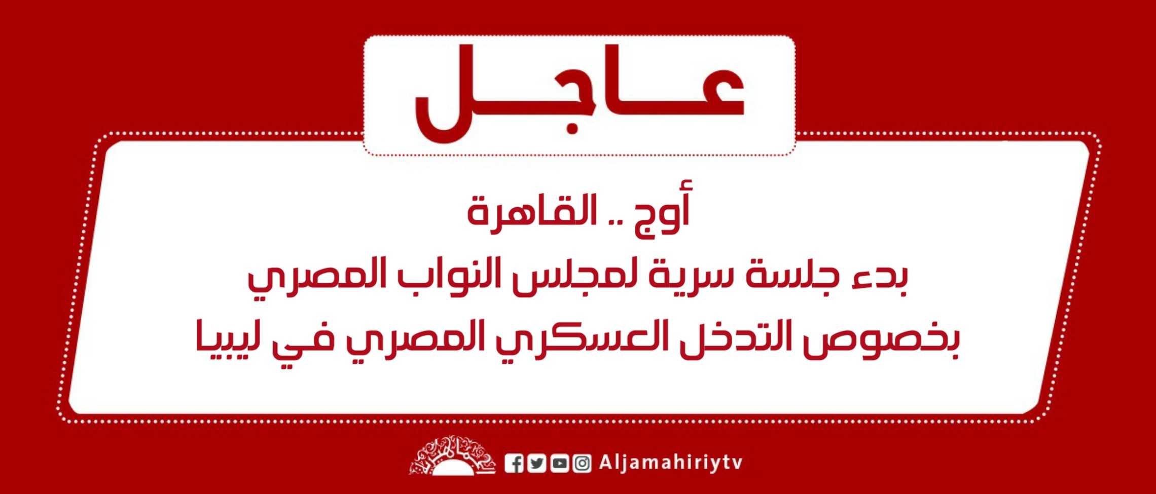 عاجل // أوج .. القاهرة بدء جلسة سرية لمجلس النواب المصري بخصوص التدخل العسكري المصري في ليبيا