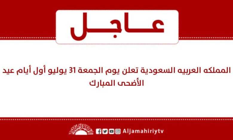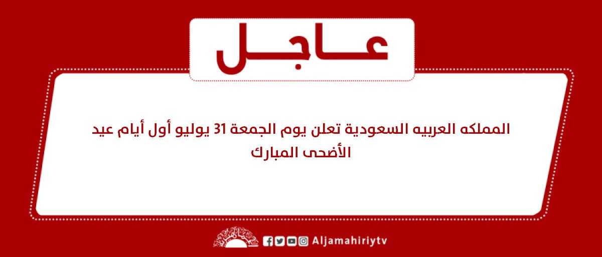 عاجل // المملكه العربيه السعودية تعلن يوم الجمعة 31 يوليو أول أيام عيد الأضحى المبارك