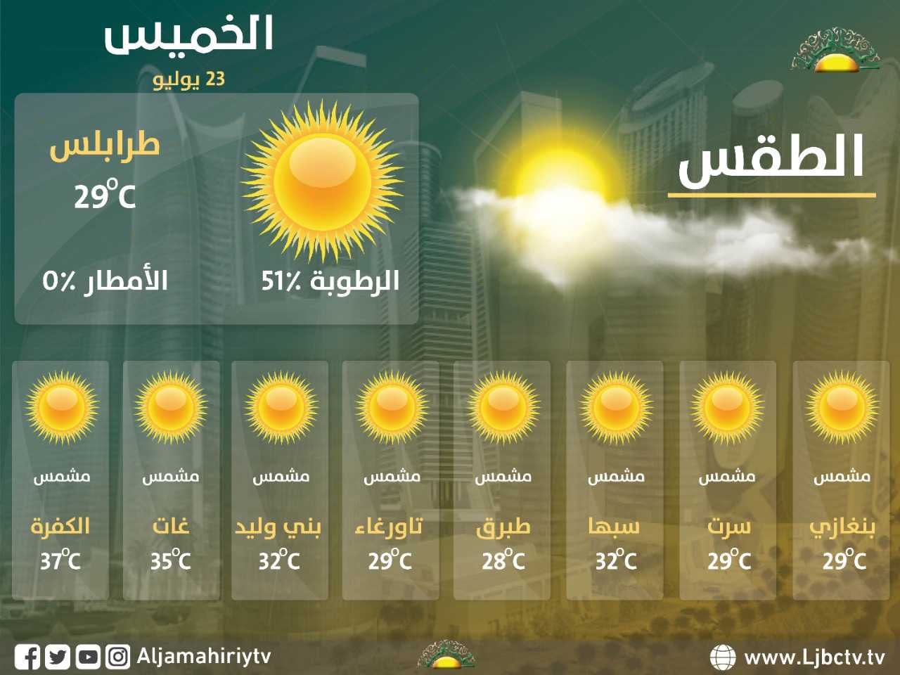 الرئيسية/الطقس/الحالة الجوية السائدة و المتوقعة الصادرة اليوم الخميس الموافق 2020/07/23 م الطقسمحلي الحالة الجوية السائدة و المتوقعة الصادرة اليوم الخميس الموافق 2020/07/23 م 23 يوليو، 2020 الوسوم#قناة_الجماهيرية 23 يوليو، 2020 فيسبوك تويتر بينتيريست واتساب تيلقرام ڤايبر مشاركة عبر البريد طباعة