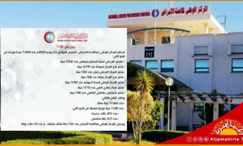 عاجل // بيان المركز الوطني لمكافحة الأمراض 138 .. 23 يوليو 2020م