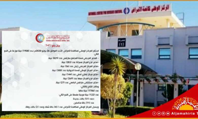 عاجل // بيان المركز الوطني لمكافحة الأمراض 141 // 26 يوليو 2020م