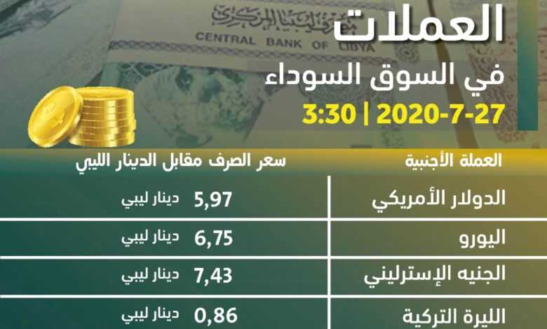 سعر الدولار و العملات الاجنبية مقابل الدينار الليبي اليوم الأثنين 27 يوليو 2020 من السوق الموازي