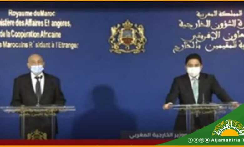 وواصل: “هذه الحرب تدمر ليبيا وتضر بمصالح الشركاء الأجانب في ليبيا، فنحن لا نريد الحرب بين الليبيين لكنها فُرضت بتدخل خارجي كما تعلمون بالأسلحة والجنود الذين يأتون من تركيا إلى ليبيا بينما هناك حظر على تسليح الجيش الليبي، ولكننا مقتنعون أن الحل يجب أن يكون بين الليبيين، وهو ما نسعى إليه، وبدعم من إخواننا العرب وفي المملكة المغربية التي لا نختلف على موقفها على الإطلاق، وبالتالي ما سمعته من وزير الخارجية المغربي ورئيس مجلس النواب يفرحنا كثيرًا لأنهم سيكونون معنا لحل هذه الأزمة”.