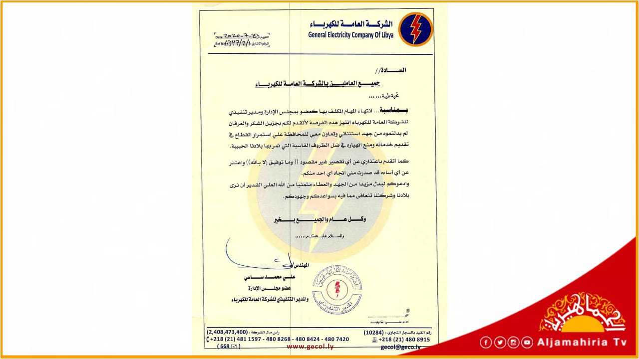 الرئيسية/محلي/عاجل // علي ساسي يعلن انتهاء فترة تكليفه بعضوية مجلس إدارة الشركة العامة للكهرباء محلي عاجل // علي ساسي يعلن انتهاء فترة تكليفه بعضوية مجلس إدارة الشركة العامة للكهرباء 29 يوليو، 2020 الوسوم#قناة_الجماهيرية 29 يوليو، 2020 فيسبوك تويتر بينتيريست واتساب تيلقرام ڤايبر مشاركة عبر البريد طباعة