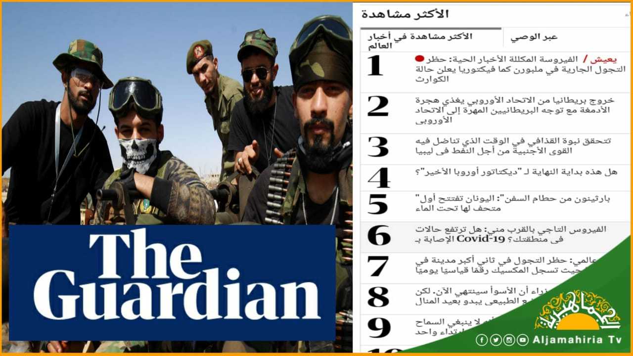 احتل المقال الذي تناول تفاصيل نبوءة القائد الشهيد معمر القذافي، حول تصارع القوى الأجنبية على النفط الليبي، الترتيب الثالث بقائمة الموضوعات الأكثر مشاهدة على موقع صحيفة “ذا غارديان” البريطانية.