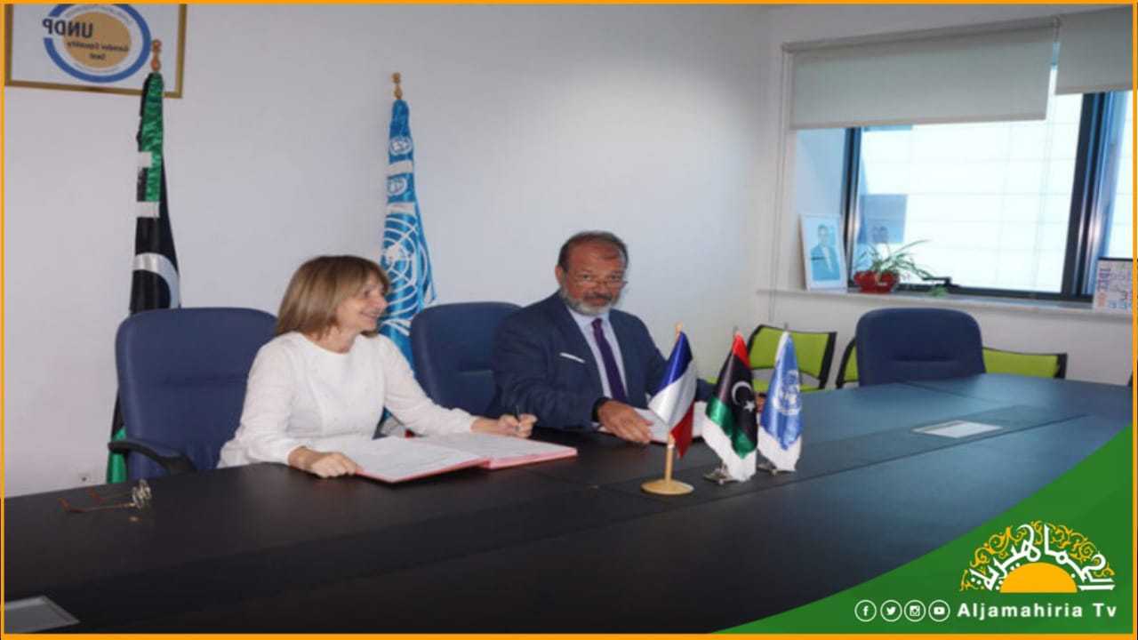 وأوضح البرنامج، في بيانٍ إعلامي، طالعته وترجمته “أوج”، أن السفيرة الفرنسية لدى ليبيا، بياتريس لو فرابر دوهيلين، وقعت اتفاقية مع الممثل المقيم لبرنامج الأمم المتحدة الإنمائي، جيراردو نوتو، تلتزم فرنسا بموجبها بمليون يورو لدعم مبادرة برنامج الأمم المتحدة الإنمائي الهادفة إلى العودة الآمنة للنازحين في طرابلس الكبرى.
