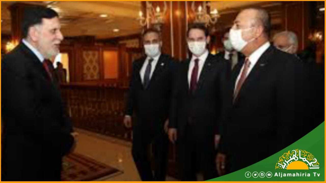 شهدت الشهور الماضية، ومنذ توقيع الاتفاقية البحرية والأمنية بين أردوغان وفايز السراج، رئيس الحكومة غير الشرعية نوفمبر 2019 الماضي. زيارات لا حصر لها لكافة المسؤولين الأتراك إلى ليبيا بدءا بوزير الدفاع التركي ورئيس الأركان، ورئيس جهاز المخابرات، وصولا إلى وزير الخارجية التركية مولود أوغلو، الذي يزور ليبيا. كما شهدت تدفقا بمعنى الكلمة لكافة مسؤولو الوفاق إلى أنقرة ولقاء أردوغان وكافة أعضاء حكومته في العديد من اللقاءات.