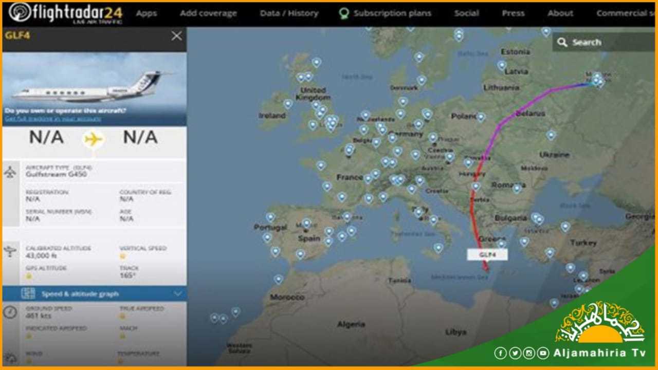 حسابات راصدة لحركة الطيران تتبع رحلة وصفتها بـ”الغامضة” لطائرة من طراز جولف ستريم 450-G، وتسلسل ” N527EF” في طريقها إلى ليبيا من موسكو