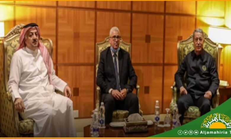 استقبل وزير الداخلية بحكومة الوفاق غير الشرعية فتحي باشاغا، مساء اليوم بفندق كورنثيا، وزيرا دفاع تركيا وقطر، خلوصي أكار، وخالد بن محمد العطية، خلال زيارتهما إلى ليبيا اليوم، مُشيدًا بالدور التركي والقطري في ليبيا، ودعمهما لحكومة الوفاق إبان حرب خليفة حفتر على جنوب العاصمة طرابلس، وارتكابه جرائم ضد الآمنين، والتي ترتقي جرائمه لأن تكون جرائم حرب، على حد تعبيره.