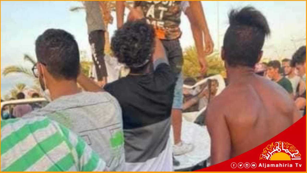 إطلاق الرصاص الكثيف على المتظاهرين في طريق الشط من قبل مرتزقة السراج السوريين