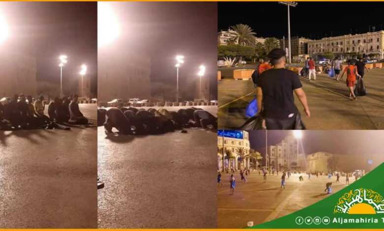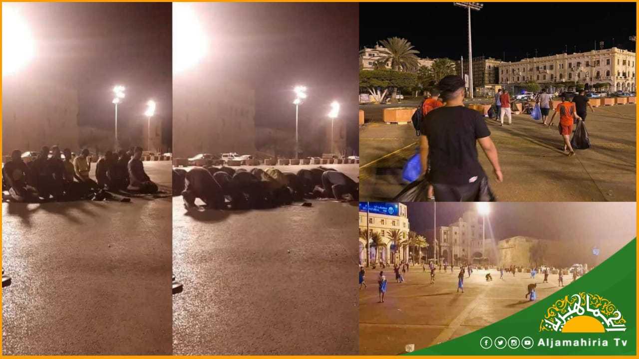 أوج طرابلس/ صور| للـ “المندسون” حسب وصف “السراج” وهم يصلون الفجر ويقومون بتنظيم الساحة الخضراء عقب توقف الإحتجاجات ضد سوء المعيشة والفساد وتغول المليشيات.