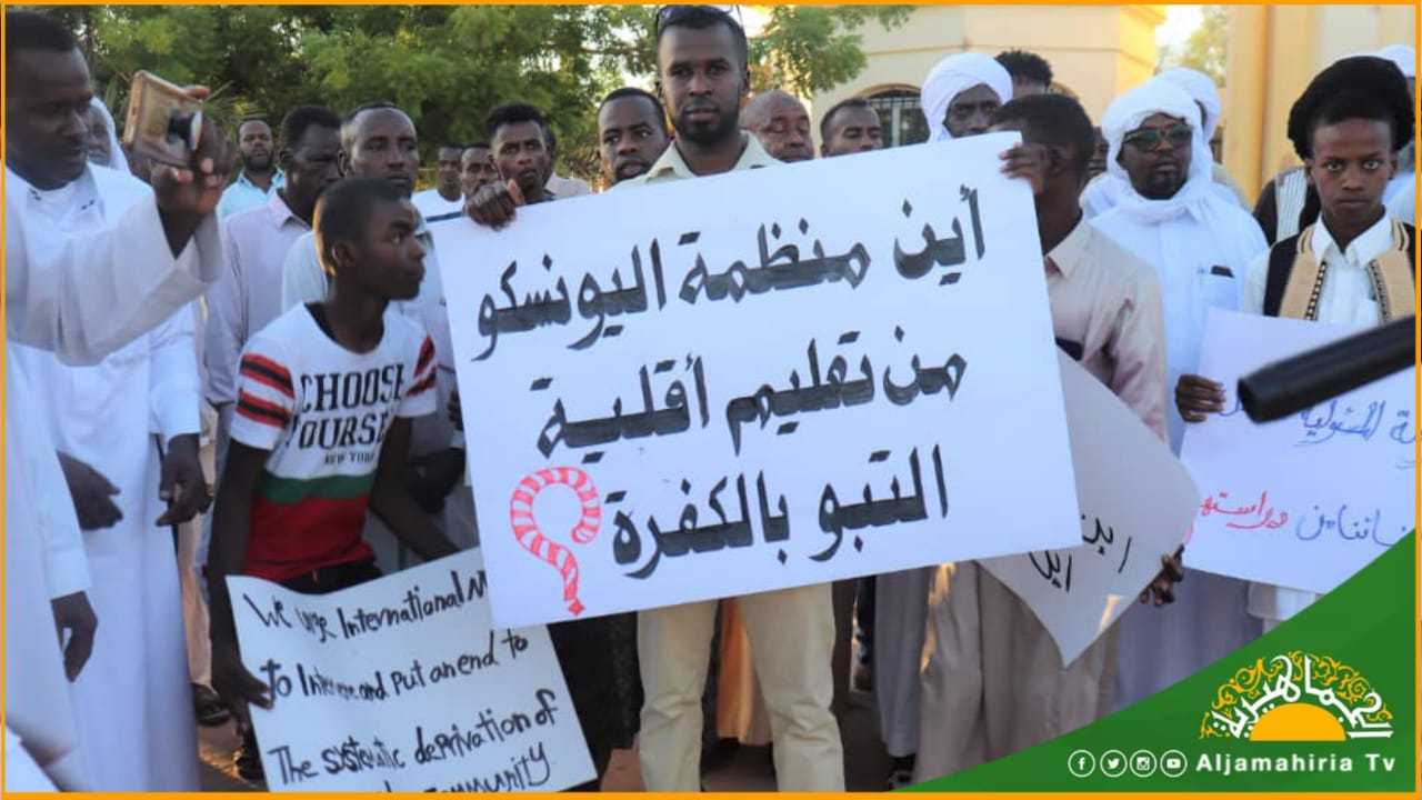ونظم طلبة وأهالي الكفرة، مكون “التبو” مظاهرات عدة للمناداة بحقهم ورفعوا لافتات قالوا فيها، إن حرماننا من التعليم هو خطوة لحرماننا من كافة حقوقنا. دراسة أبنائنا ضمان لمستقبل حقوقهم.