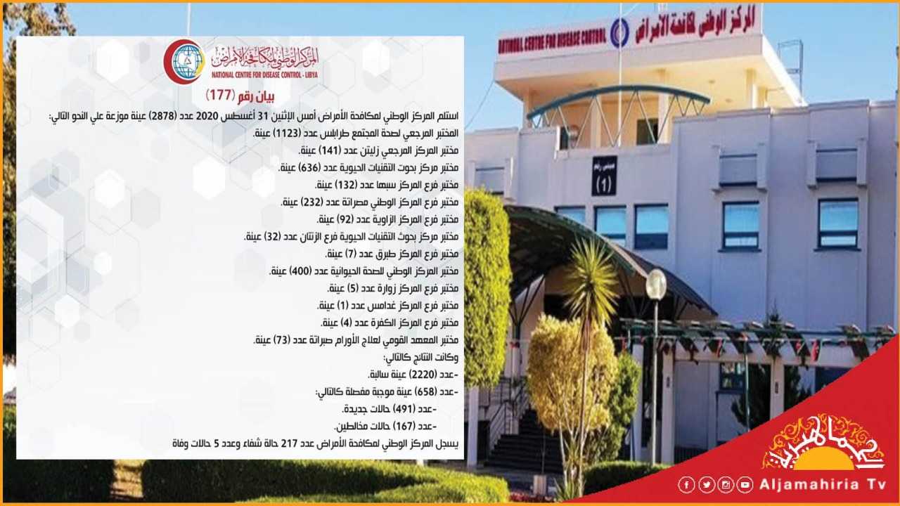 يسجل المركز الوطني لمكافحة الأمراض عدد 217 حالة شفاء وعدد 5 حالات وفاة.
