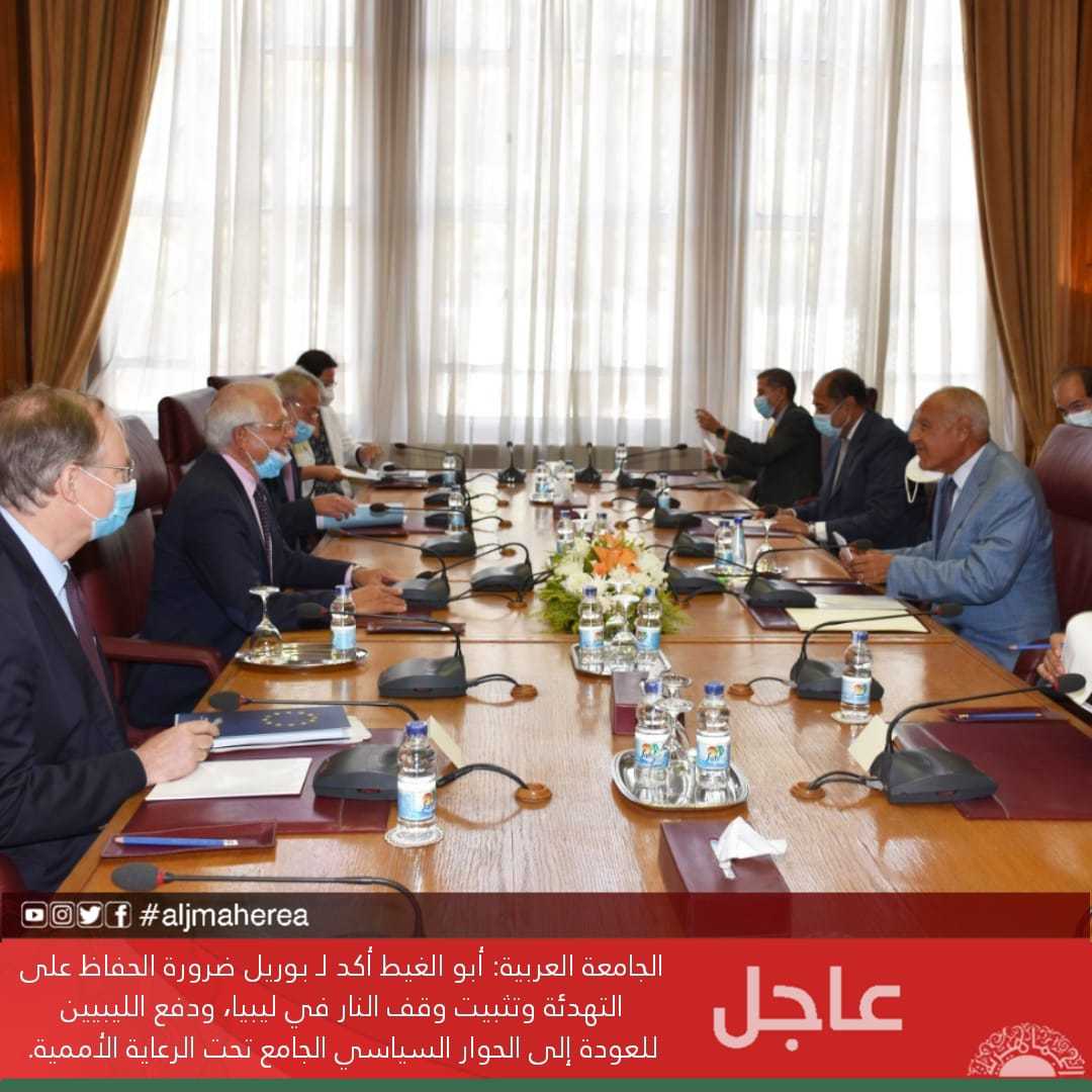 الجامعة العربية: أبو الغيط أكد لـ بوريل ضرورة الحفاظ على التهدئة وتثبيت وقف النار في ليبيا، ودفع الليبيين للعودة إلى الحوار السياسي الجامع تحت الرعاية الأممية.