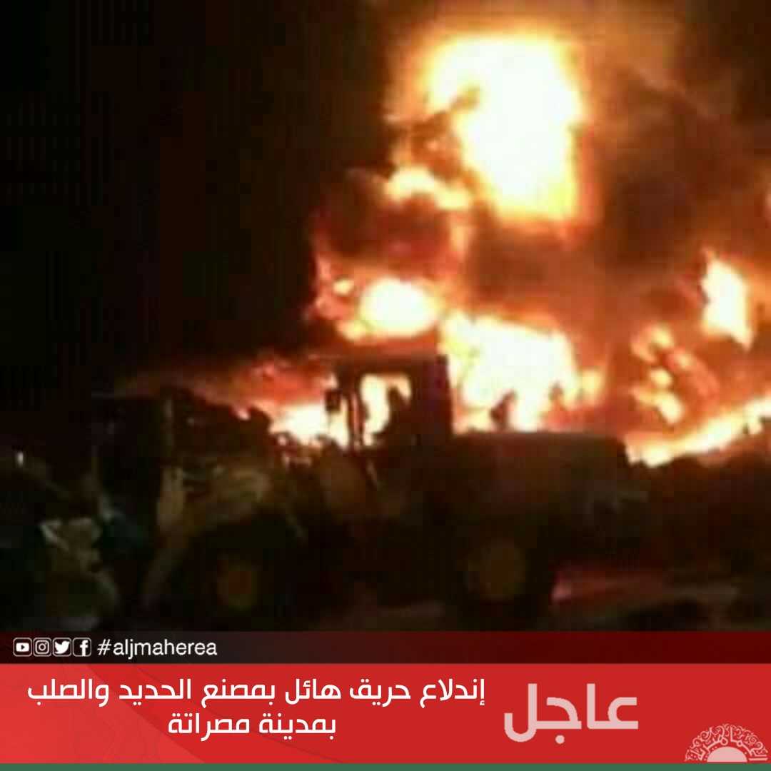 إندلاع حريق هائل في مصنع الحديد والصلب بمدينة مصراتة