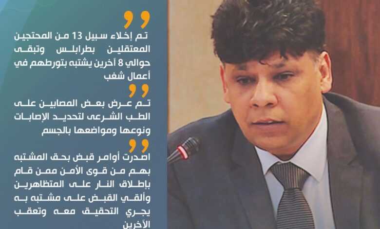 تم إخلاء سبيل 13 من المحتجين المعتقلين بطرابلس وتبقى حوالي 8 آخرين يشتبه بتورطهم في أعمال شغب