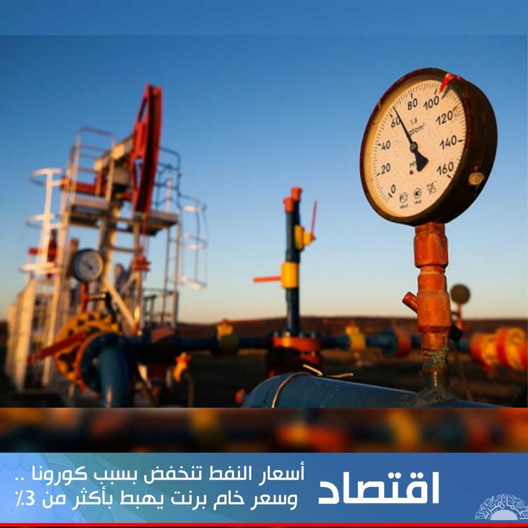 أسعار النفط تنخفض بسبب كورونا .. وسعر خام برنت يهبط بأكثر من 3%