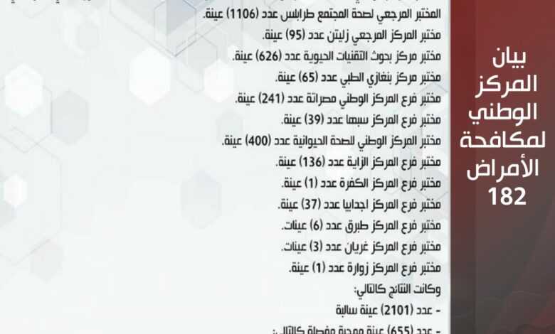 بيان المركز الوطني لمكافحة الأمراض – 182