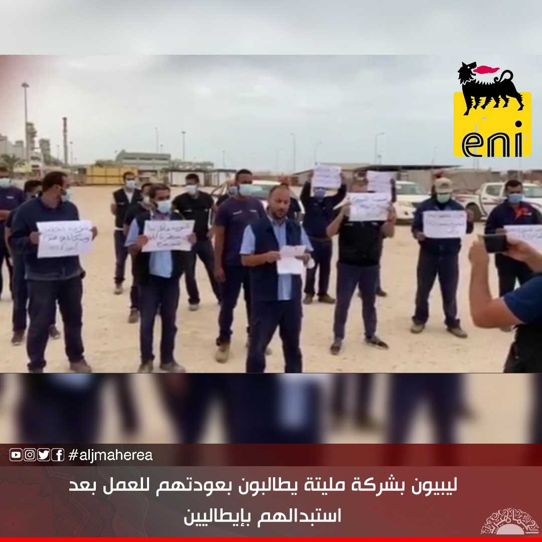 احتج عاملون ليبيون بمشروع “جنرال ماكين سرفيس”، التابع لشركة مليتة للغاز على وقفهم عن العمل واستبدالهم بعمال إيطالي الجنسية.