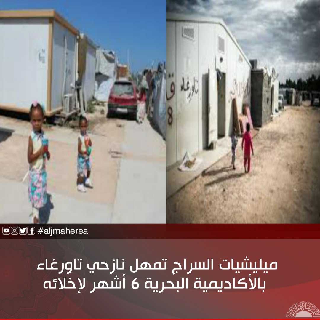 أمهلت ميليشيا تابعة للسراج، نازحي تاورغاء المقيمين بمخيم الأكاديمية البحرية الواقعة بمنطقة جنزور غرب طرابلس، 6 أشهر لإخلاء المخيم بحجة عودة الدراسة دون توفير سكن بديل. أو تأمين عودتهم لمدينتهم تاورغاء المدمرة بالكامل والغير مسموح لأغلبهم بالعودة لها.