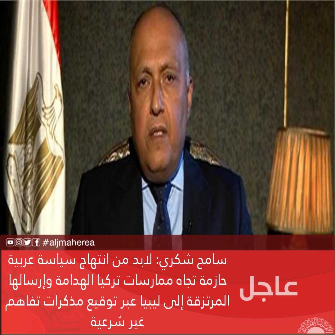 عاجل // سامح شكري: لابد من انتهاج سياسة عربية حازمة تجاه ممارسات تركيا الهدامة وإرسالها المرتزقة إلى ليبيا عبر توقيع مذكرات تفاهم غير شرعية