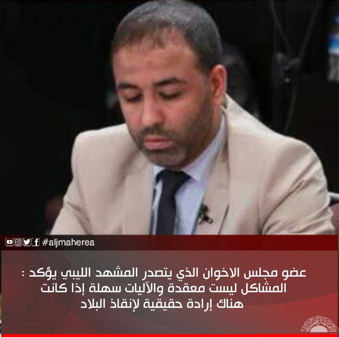 عضو مجلس الاخوان الذي يتصدر المشهد الليبي يؤكد : المشاكل ليست معقدة والآليات سهلة إذا كانت هناك إرادة حقيقية لإنقاذ البلاد