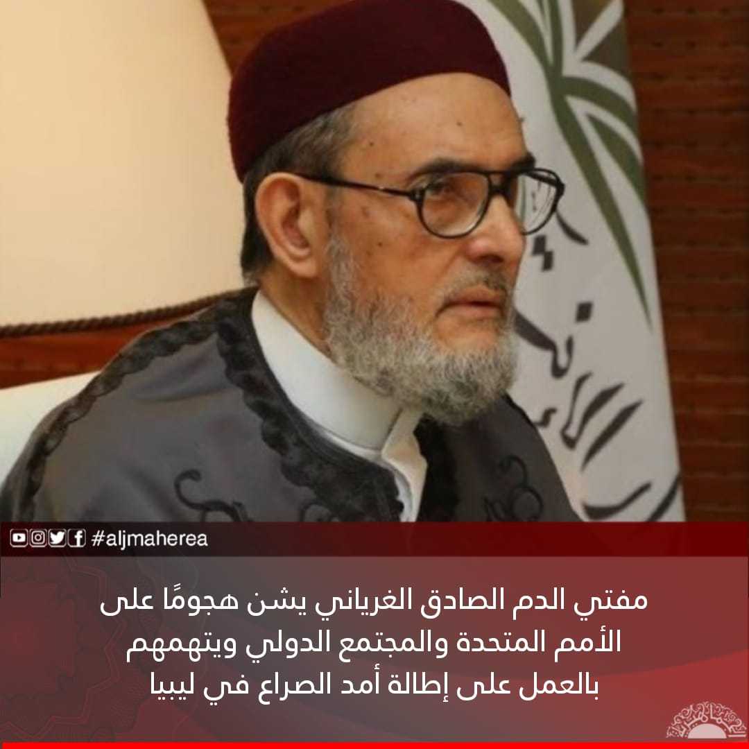 مفتي الدم الصادق الغرياني يشن هجومًا على الأمم المتحدة والمجتمع الدولي ويتهمهم بالعمل على إطالة أمد الصراع في ليبيا