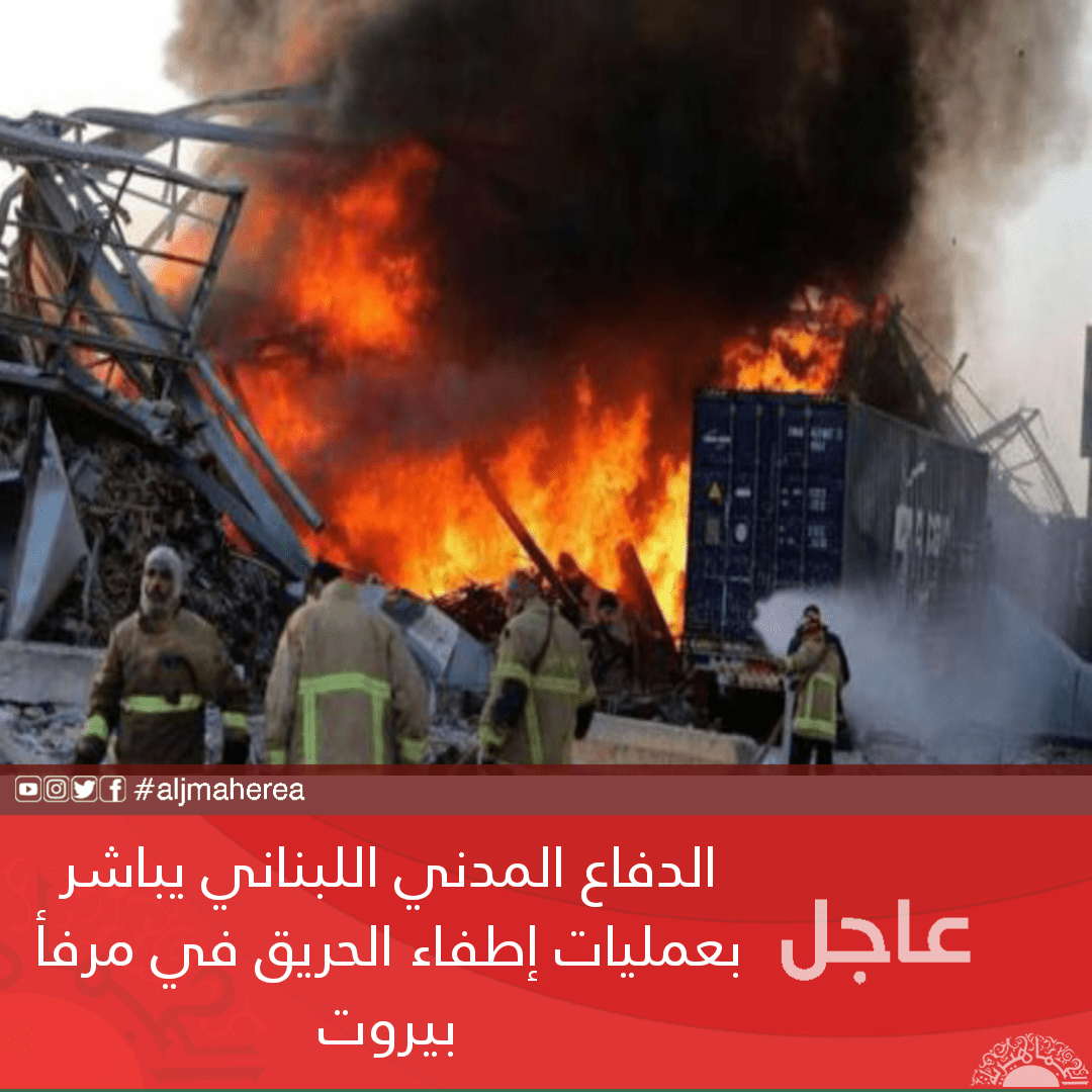 الدفاع المدني اللبناني يباشر بعمليات إطفاء الحريق في مرفأ بيروت