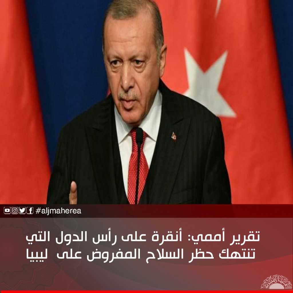 أكد تقرير لمنظمة الأمم المتحدة، أن تركيا لم تتوقف عن إرسال الأسلحة والمعدات إلى ليبيا. وهى في صدارة الدول التي تقوم بإرسال الأسلحة رغم فرض الحظر. لافتة ألى أن أنقرة لم تلتزم نهائيًا بقرار حظر توريد الأسلحة لليبيا.