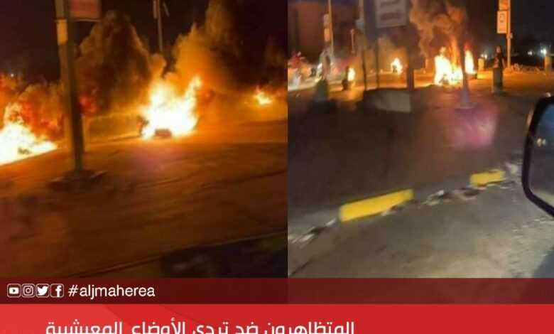 المتظاهرون ضد تردي الأوضاع المعيشيية يواصلون لليوم الثاني على التوالي احتجاجهم بإشعال النيران وحرق الإطارات وإغلاق الطرقات في كل المناطق بمدينة بنغازي