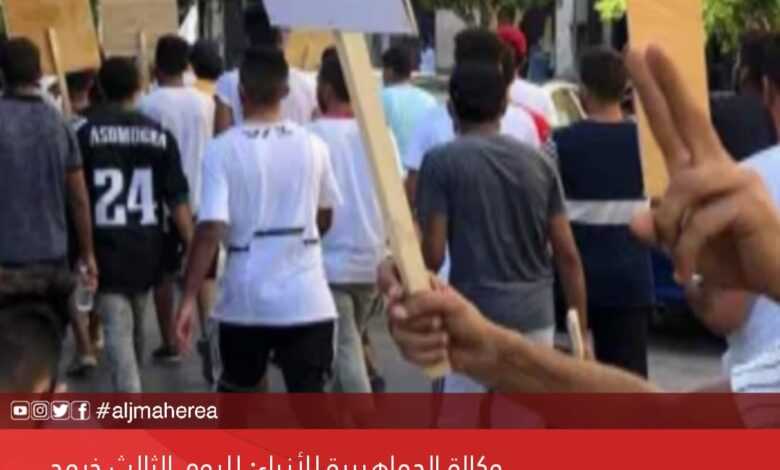عاجل // وكالة الجماهيرية للأنباء: لليوم الثالث خروج مظاهرات إحتجاجية على سوء الأوضاع المعيشية وانتشار الفساد وإطالة الفترة الإنتقالية بمفترق الطلحي في مدينة البيضاء