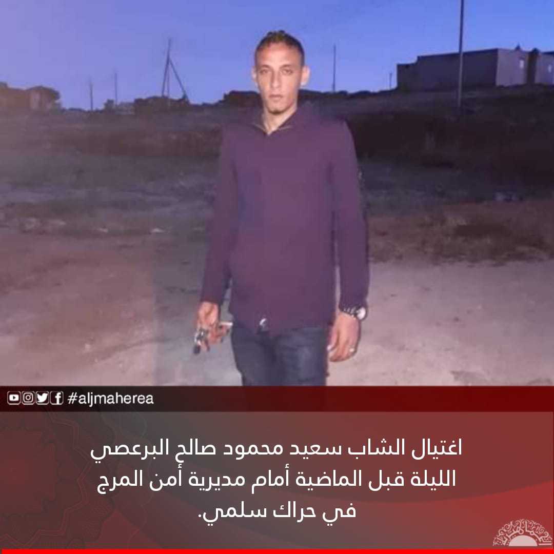 اغتيال الشاب سعيد محمود صالح البرعصي الليلة قبل الماضية أمام مديرية أمن المرج في حراك سلمي