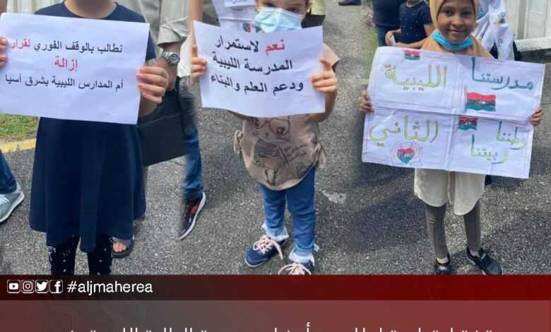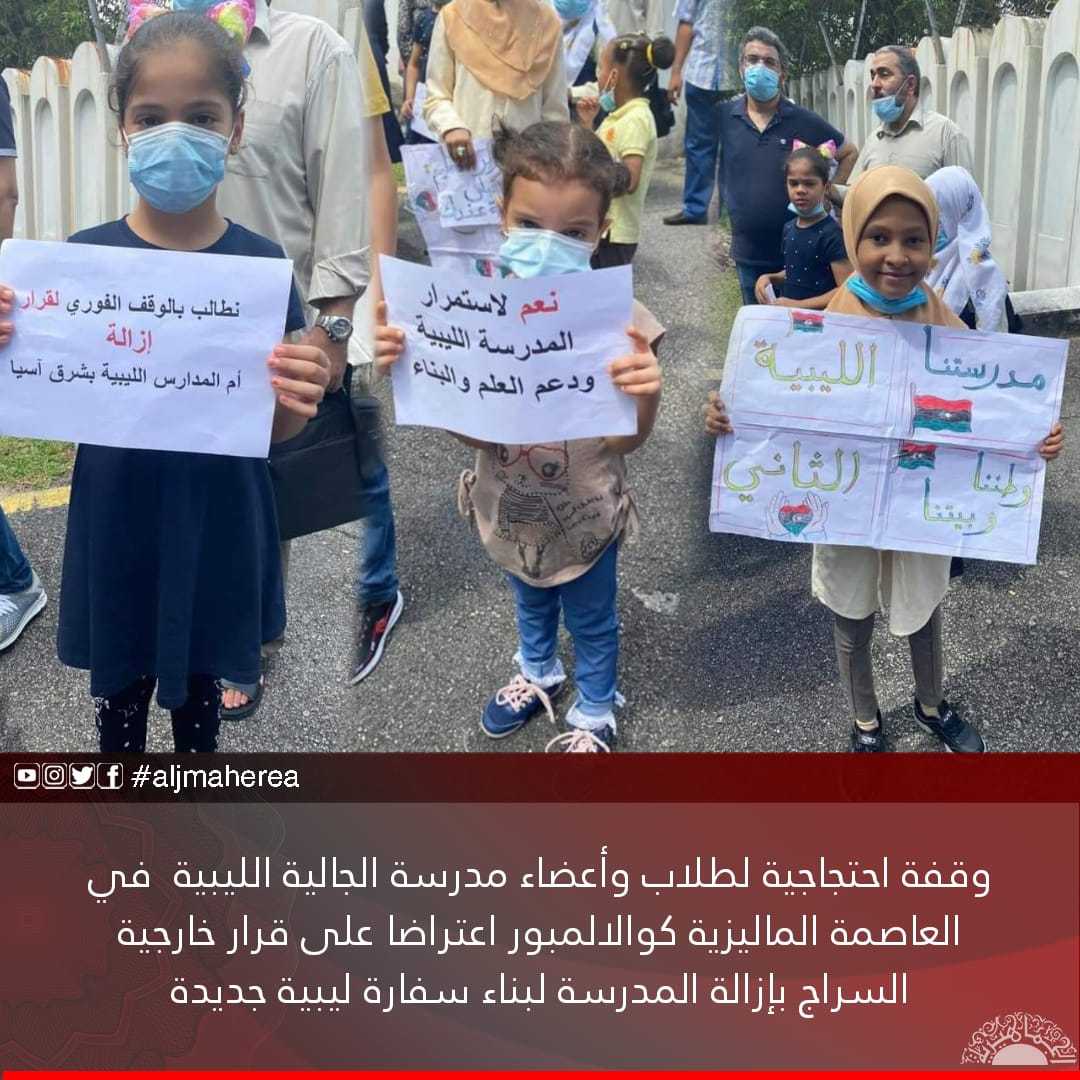 صور | وقفة احتجاجية لطلاب وأعضاء مدرسة الجالية الليبية في العاصمة الماليزية كوالالمبور اعتراضا على قرار خارجية السراج بإزالة المدرسة لبناء سفارة ليبية جديدة