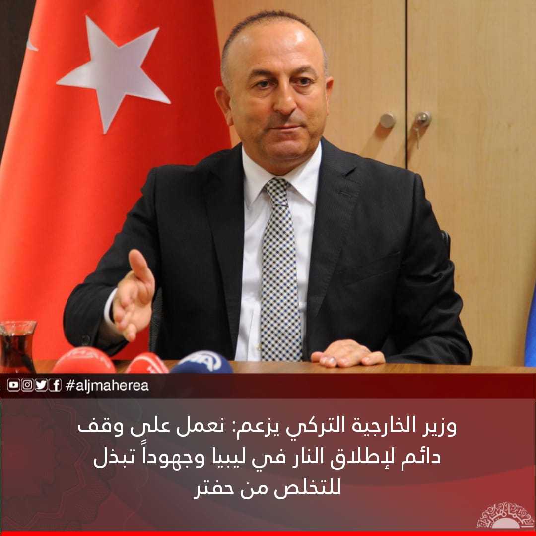 وزير الخارجية التركي يزعم: نعمل على وقف دائم لإطلاق النار في ليبيا وجهوداً تبذل للتخلص من حفتر