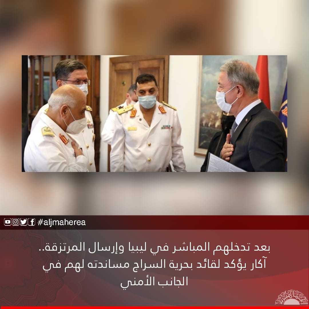 بعد تدخلهم المباشر في ليبيا وإرسال المرتزقة.. آكار يؤكد لقائد بحرية السراج مساندته لهم في الجانب الأمني