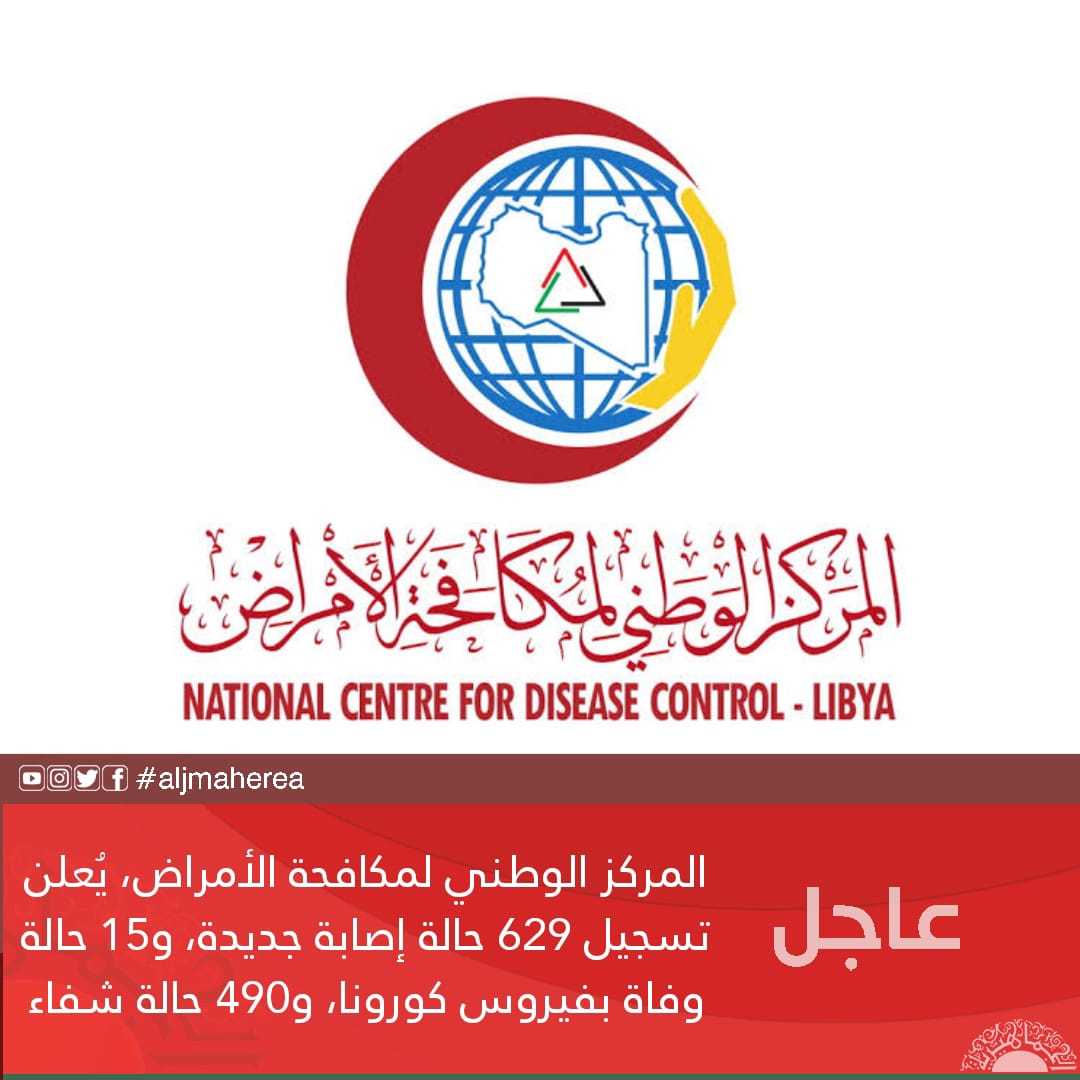 عاجل // أوج طرابلس / المركز الوطني لمكافحة الأمراض، يُعلن تسجيل 629 حالة إصابة جديدة، و15 حالة وفاة بفيروس كورونا، و490 حالة شفاء