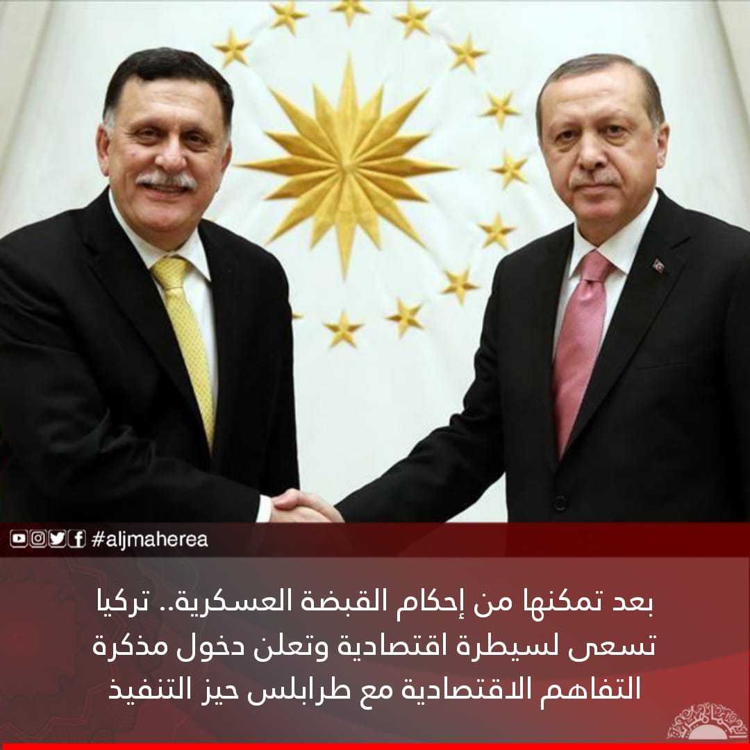 وبقراءة المشهد يرى مراقبون أن تركيا تمكنت من خلال المذكرة العسكرية والأمنية من إحكام قبضتها على مفاصل الأوضاع في ليبيا، ولذلك تسعى الآن لإحكام السيطرة الاقتصادية على ليبيا