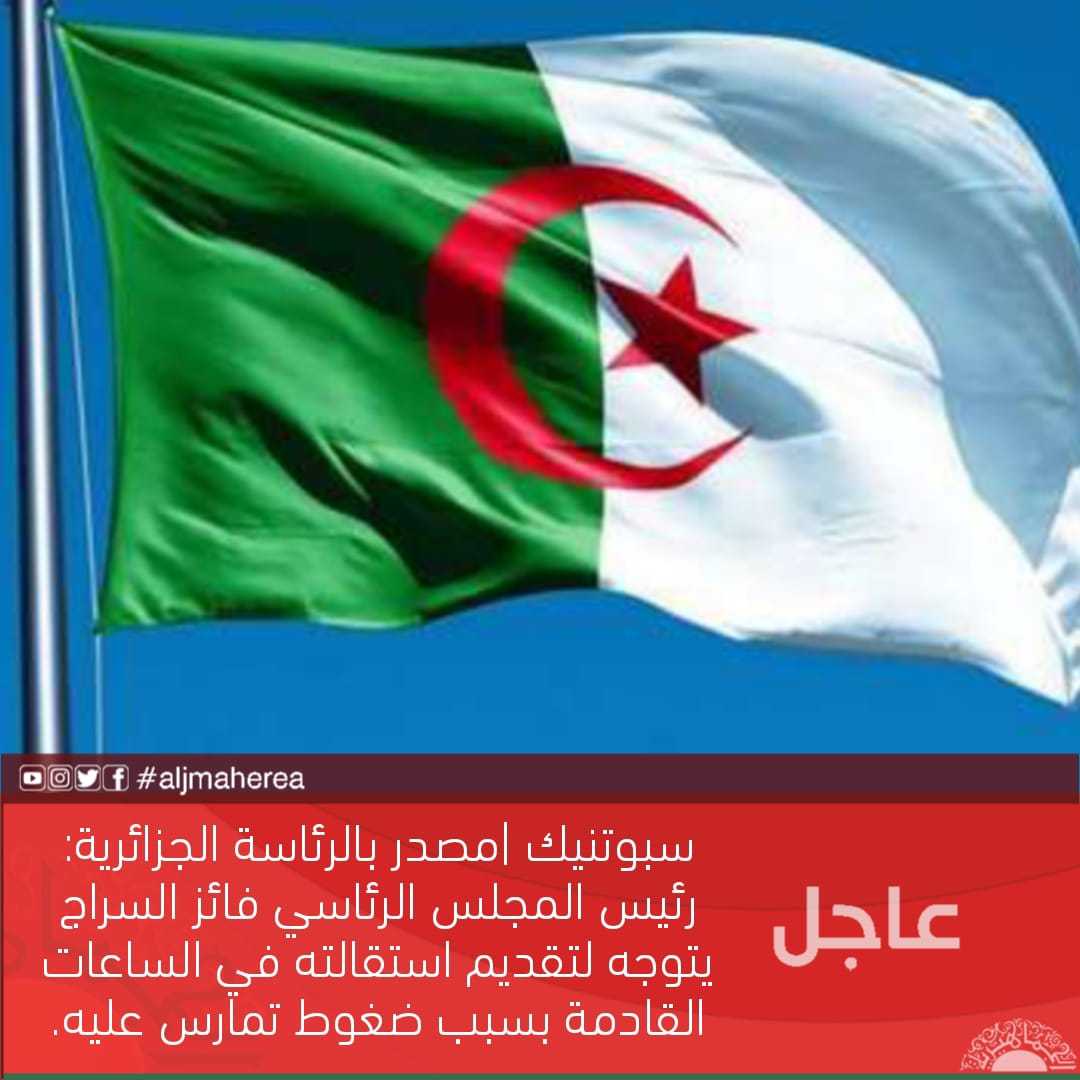 عاجل // سبوتنيك |مصدر بالرئاسة الجزائرية: رئيس المجلس الرئاسي فائز السراج يتوجه لتقديم استقالته في الساعات القادمة بسبب ضغوط تمارس عليه