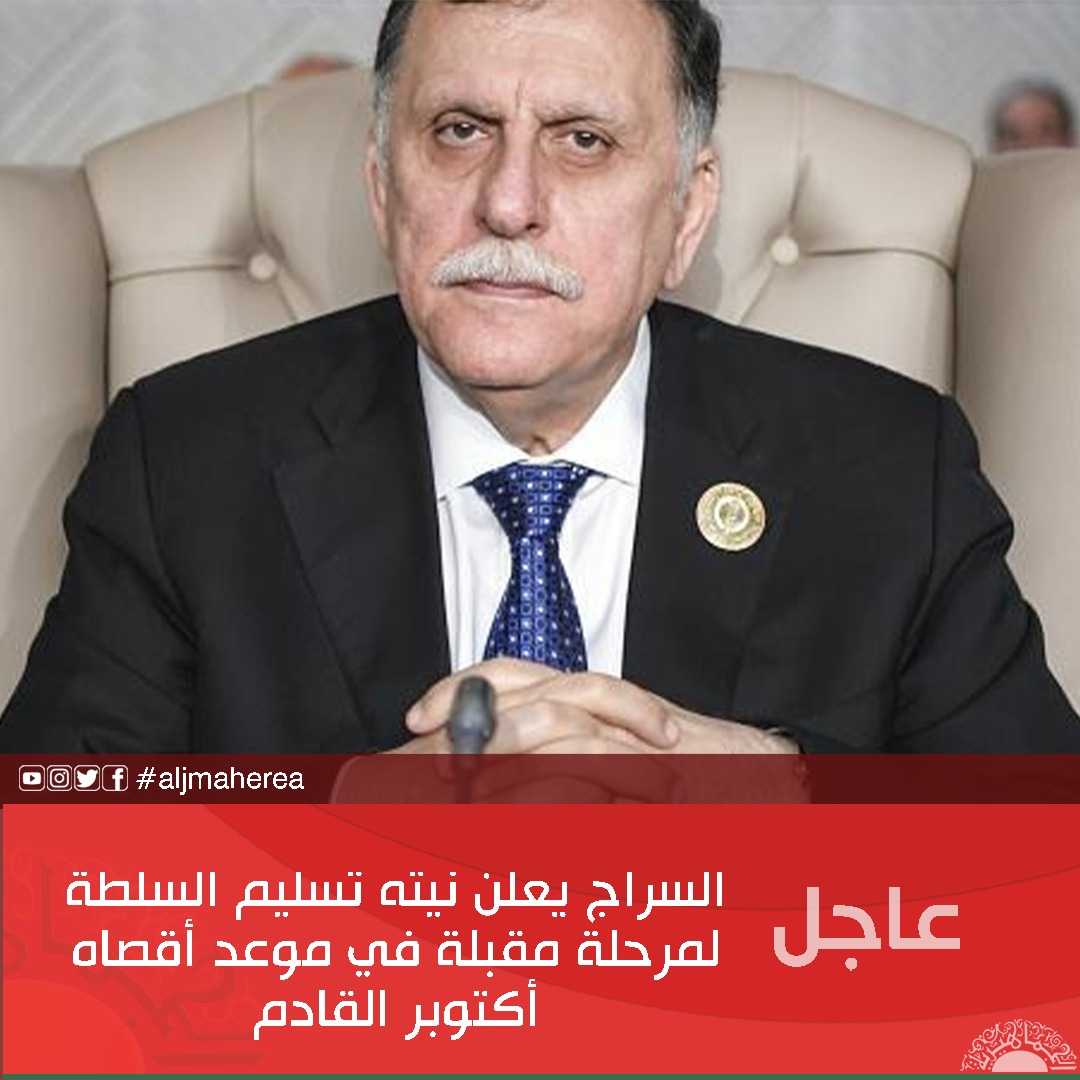 السراج يعلن نيته تسليم السلطة لمرحلة مقبلة في موعد أقصاه أكتوبر القادم