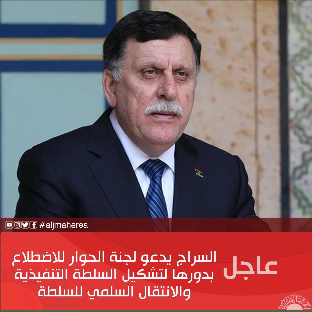 عاجل // السراج يدعو لجنة الحوار للاضطلاع بدورها لتشكيل السلطة التنفيذية والانتقال السلمي للسلطة