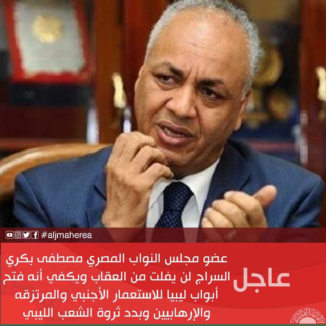 عاجل // عضو مجلس النواب المصري مصطفى بكري: السراج لن يفلت من العقاب ويكفي أنه فتح أبواب ليبيا للاستعمار الأجنبي والمرتزقه والإرهابيين وبدد ثروة الشعب الليبي