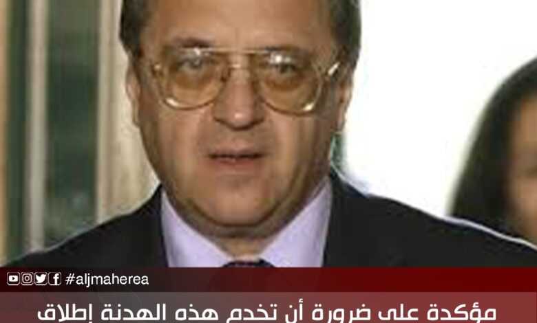 اعربت موسكو عن ارتياحها لوقف الأعمال القتالية في ليبيا، مشيرًة من خلال مبعوث الرئيس الروسي إلى الشرق الأوسط وإفريقيا، ونائب وزير الخارجية، ميخائيل بوغدانوف، اليوم الأحد إلى أن تلك الهدنة يجب تثبيتها، مشددة على ضرورة أن تخدم هذه الهدنة إطلاق حوار بين الأطراف الليبية، وليس تجزئة البلاد.