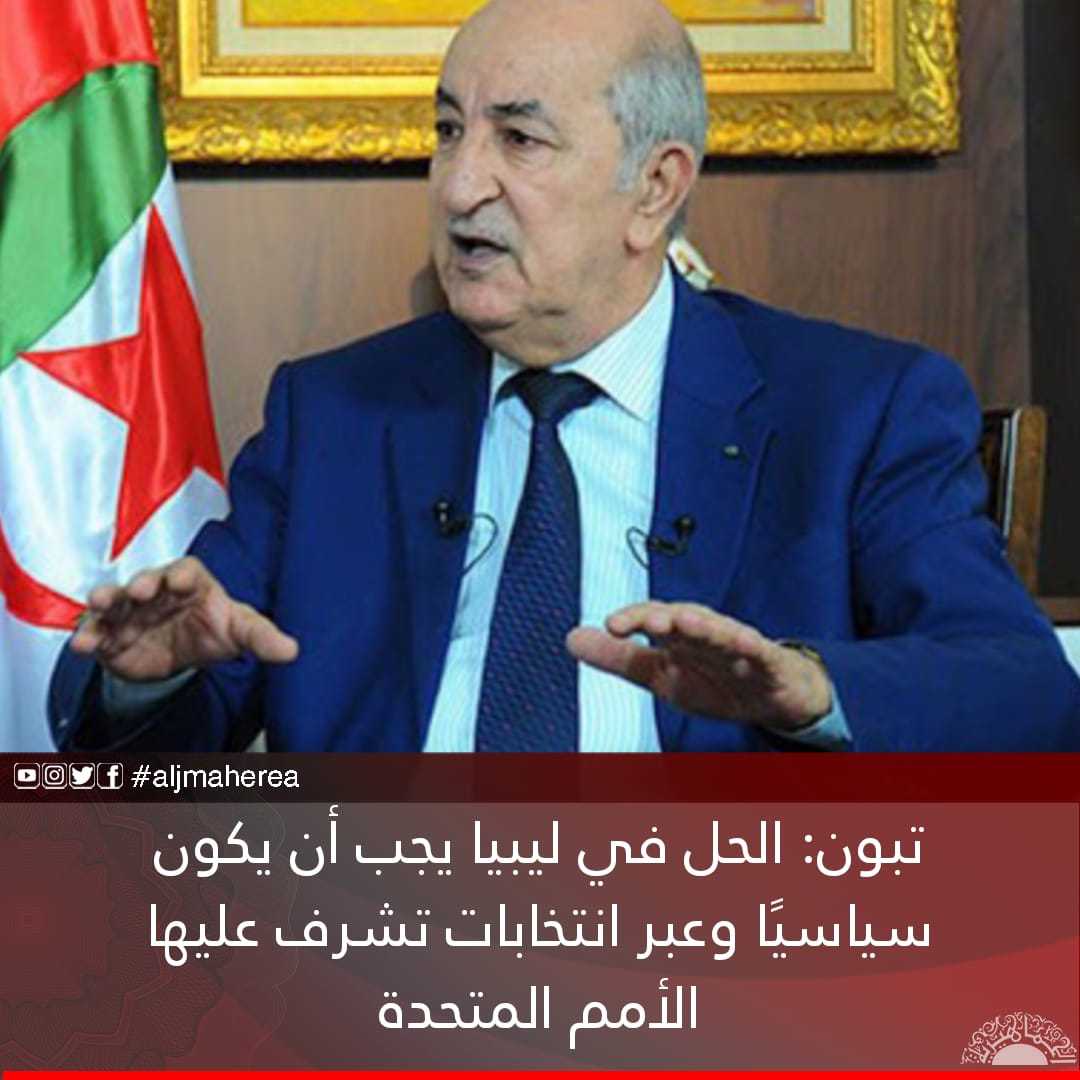 تبون: الحل في ليبيا يجب أن يكون سياسيًا وعبر انتخابات تشرف عليها الأمم المتحدة