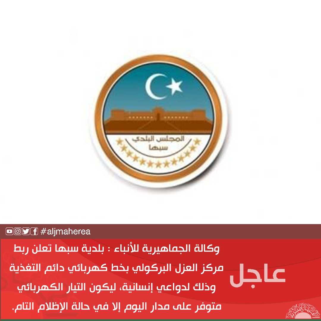 عاجل // وكالة الجماهيرية للأنباء : بلدية سبها تعلن ربط مركز العزل البركولي بخط كهربائي دائم التغذية وذلك لدواعي إنسانية، ليكون التيار الكهربائي متوفر على مدار اليوم إلا في حالة الإظلام التام